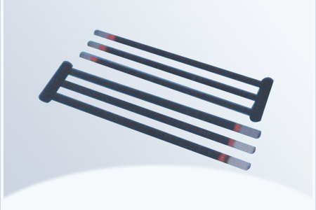 硅碳棒是用高純度綠色六方碳化硅為主要原料,按一定料比加工制坯,經(jīng)2200℃高溫硅化再結(jié)晶燒結(jié)而制成的棒狀、管狀非金屬高溫電熱元件。氧化性氣氛中正常使用溫度可達1450℃,連續(xù)使用可達2000小時。